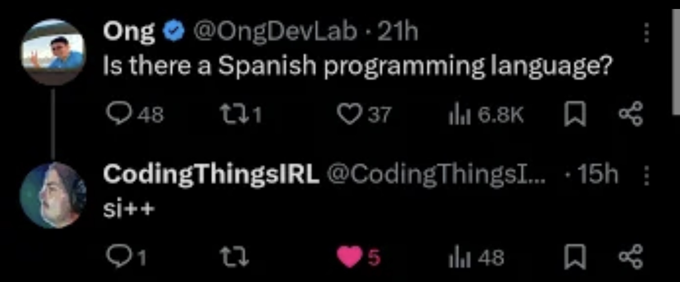 Sí - A direct translation pseudo-language for coding in C and C++ with Spanish keywords. (from Wikipedia)