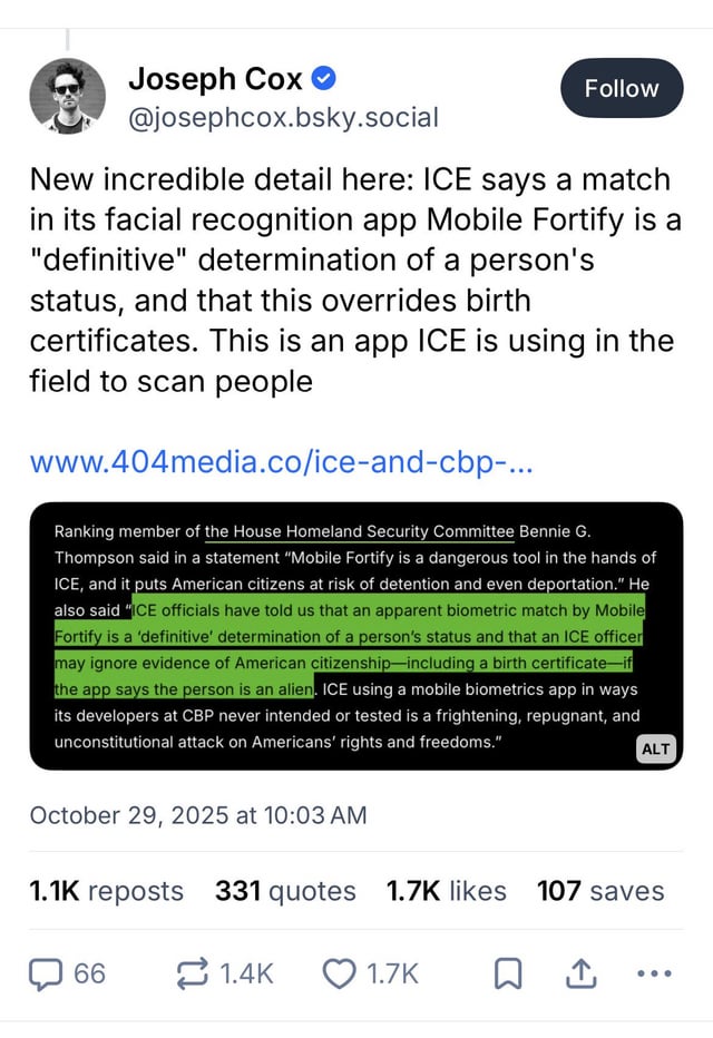 Sunflier@lemmy.world to People Twitter@sh.itjust.worksEnglish · edit-27 days agoThis is an app ICE is using in the field to scan peoplelemmy.worldimagemessage-square153fedilinkarrow-up11.03Karrow-down16file-text