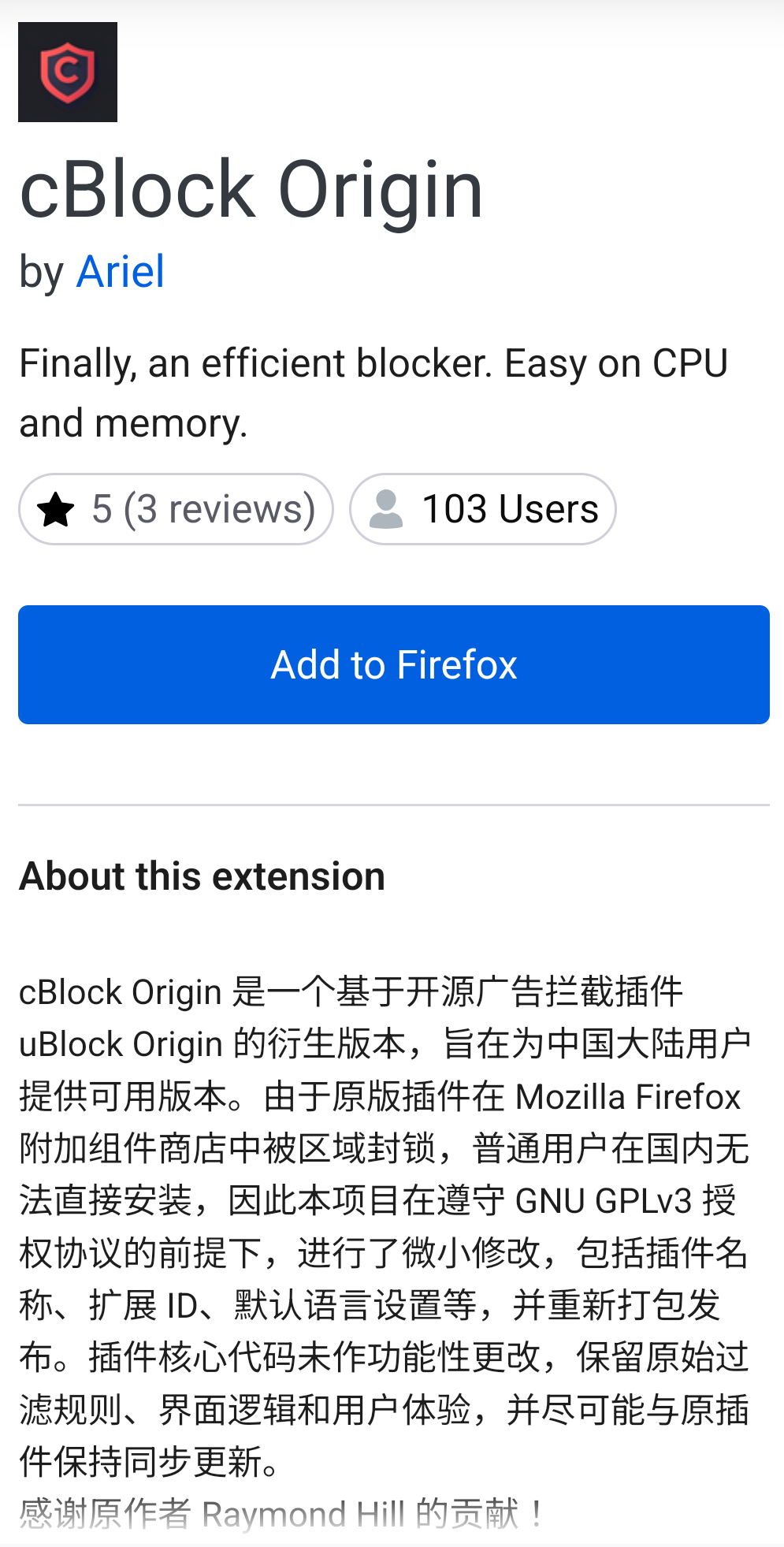 I found this addon on firefox addon store. Its named like cblock origin. Is this genuine ?