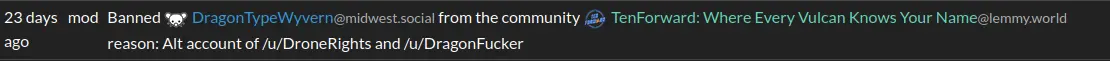 I also don’t think they’re a drag alt. But they could be a DroneRights alt. It’s pretty obvious that .world users think drag is DroneRights because they’re both xenogender, and .world users think that’s trolling. But I’d take the DragonTypeWyvern accusations more seriously because they use the same pronouns and Drone has been around longer than Wyvern.